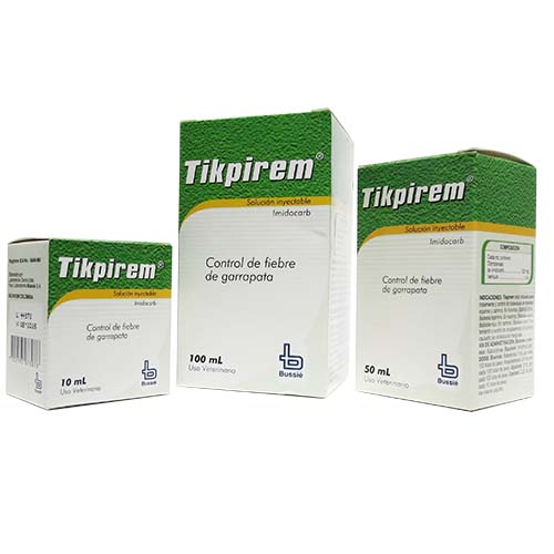 TIKPIREM está indicado para el tratamiento y control de babesiosis en bovinos, equinos y caninos. En bovinos, Babesia Bovis, Babesia bigemina, En equinos, Babesia caballi, Babesia equi. En caninos, Babesia canis.